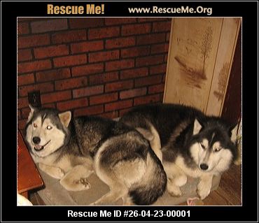 Two Siberian Huskies, must be adopted together, have spent entire lives together. Neither animal have been fixed,